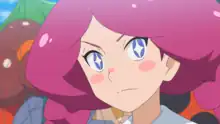 When Jessie turns around after hearing the lab assistants calling out to Goh, Chloe, Yamper, and Eevee while chasing them, the cyan bowties on her hair of her school uniform disguise are the same color as her hair.