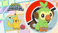When Goh wakes up from a nightmare, he finds a Grookey clinging to his arm. He tries to catch it, but his Rotom Phone says it already has a Trainer! The question is who, so Ash and Goh set out to find Grookey’s real home. After watching surveillance camera footage from a local shop, they discover that Grookey came from Team Rocket’s Rocket Prize Master machine…and right on cue, the villainous team arrives and returns the Pokémon to its Poké Ball! But Grookey manages to escape, and when Team Rocket reappears, Grookey destroys the Poké Ball—giving Goh the chance to throw his own and catch Grookey for himself!