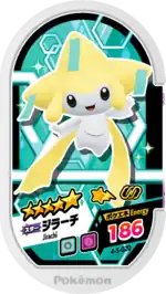Jirachi (Japanese: ジラーチ Jirachi) is a Grade 5 Pokémon Mezastar tag. It is part of the fifth Gorgeous Star set.