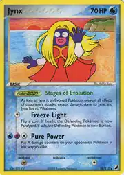 Jynx (Japanese: カポエラー Rougela) is a Water-type Basic Pokémon card. It is part of the EX Unseen Forces expansion.