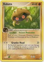 Kabuto (Japanese: カブト Kabuto) is a Fighting-type Stage 1 Pokémon card. It is part of the EX Legend Maker expansion.