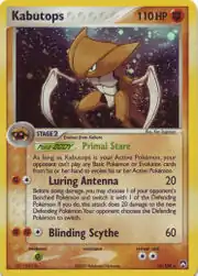 Kabutops (Japanese: カブトプス Kabutops) is a Fighting-type Stage 2 Pokémon card. It is part of the EX Power Keepers expansion.