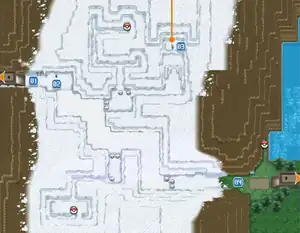 Due to constant snowstorms in the area, most of this route is covered in snow so thick that it is completely inaccessible by foot. Any person who wishes to travel through the route must ride a rental Mamoswine in order to do so. With the massive Pokémon, not only can the player plow through the snow with ease, but they can also be used to crush big boulders blocking certain parts of the route. In these certain parts, narrow paths have been plowed into the snow, allowing them to be accessed without the need of riding a Mamoswine.