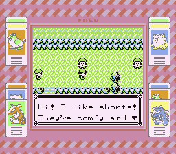 In Pokémon FireRed and LeafGreen, Ben instead exclaims, "Hi! I like shorts! They're delightfully comfy and easy to wear!