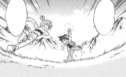 After encountering Team Rocket inside the caves of Mt. Moon, Red and Misty exited the mountain on the eastern section of Route 4. Misty was frustrated for them failing to find a Moon Stone, until Red revealed that he had actually managed to find one when Pika had collapsed a part of the cave to prevent Team Rocket from following them.
