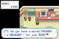 In the Pokémon Center, Trainers can heal their Pokémon after a hard journey through Route 3; however, a number of other things can be done in the Pokémon Center. In Generations I, III, and VII, a shady man, which happens to be the Magikarp salesman, can be found in the corner of the Center selling Trainers a Magikarp for $500 (but does not offer a refund). While this may seem as something of a ripoff, some players consider it very worthwhile to raise a Magikarp from such an early point in the game, allowing the player to train and evolve it into a Gyarados much earlier than if they had waited until they are given an Old RodRBYFRLG or the Partner Pokémon is taught the Secret Technique Sea Skim.PE There is also a man reading a newspaper who says that Team Rocket are attacking Cerulean citizens.