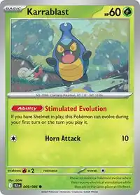 Karrablast (Japanese: カブルモ Kaburumo) is a Grass-type Basic Pokémon card. It is part of the Black Bolt expansion.