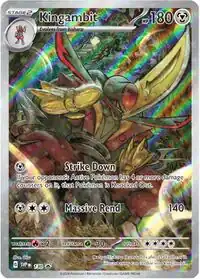 Kingambit (Japanese: ドドゲザン Dodogezan) is a Metal-type Stage 2 Pokémon card. It was first released as part of the Obsidian Flames expansion.