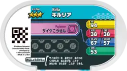 Kirlia (Japanese: キルリア Kirlia) is a Grade 3 Pokémon Mezastar tag. It is part of the second Gorgeous Star set.