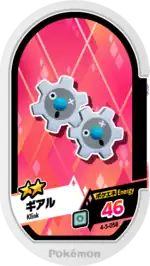 Klink (Japanese: ギアル Giaru) is a Grade 2 Pokémon Mezastar tag. It is part of the fifth Gorgeous Star set.