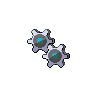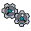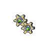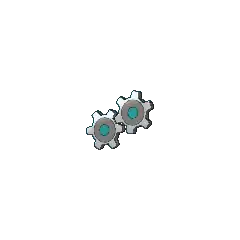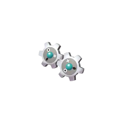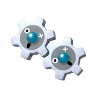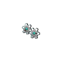 Klink is a Pokémon resembling two interlocking gears with six teeth each. The teeth of the gears are light-gray, with a darker central region. Each gear has a white "X" in place of its left eye, while their right eyes have a black pupil and white sclerae. They have round turquoise noses and small mouths.