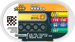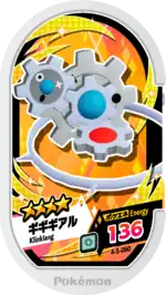 Klinklang (Japanese: ギギギアル Gigigiaru) is a Grade 4 Pokémon Mezastar tag. It is part of the fifth Gorgeous Star set.