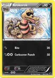 Krokorok (Japanese: ワルビル Waruvile) is a Darkness-type Stage 1 Pokémon card. It is part of the Plasma Freeze expansion.