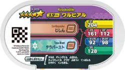 Krookodile (Japanese: ワルビアル Waruvial) is a Grade 5 Pokémon Mezastar tag. It is part of the third Gorgeous Star set.