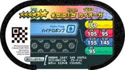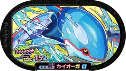 Kyogre (Japanese: カイオーガ Kyogre) is a Grade 6 Pokémon Mezastar tag. It is part of the first set.