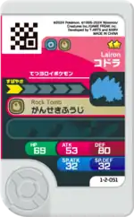 Lairon (Japanese: コドラ Kodora) is a Grade 2 Pokémon Frienda Pick. It is part of the second set.