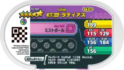 Latias (Japanese: ラティアス Latias) is a Grade 5 Pokémon Mezastar tag. It is part of the fifth Gorgeous Star set.