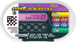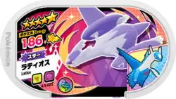 Latios (Japanese: ラティオス Latios) is a Grade 5 Pokémon Mezastar tag. It is part of the fifth Gorgeous Star set.
