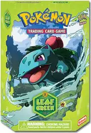 The LeafGreen Theme Deck from the EX FireRed & LeafGreen expansion of the Pokémon Trading Card Game predominantly focuses on Grass-type and Lightning-type Pokémon. Each Theme Deck is packaged with a 60-card deck, damage counters, a custom coin, a rulebook, a card list, and a single-player mat.