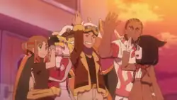 Later, after Orla had been convinced to fly on the airship once again, Liko and the others pitched in to help clean and repair the Brave Olivine. Once they were done, Mollie, Murdock, and Ludlow arrived to join as well. To everyone else's surprise, Uruto proudly stated he would be joining the Rising Volt Tacklers as their newest member. As they prepared to take off, Dot discovered a message from Friede revealing to everyone that he was alive and well, but was in hiding from the Explorers.