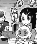 In For Sure! 'Cause Sprigatito's with Me!, Liko discovered that her mother had hired the Rising Volt Tacklers to protect her. The group soon reached the city where the Explorers were last seen. After running an errand for Mollie at the city's Pokémon Center, she followed the sound of Murdock's Rockruff's barking and discovered that Murdock and Friede had found Onia. She and Friede chased Onia back to the Explorers' hideout, where Friede engaged Amethio in a battle, allowing her and Rockruff to locate Sprigatito. Feeling she could trust them, Liko decided to join the Rising Volt Tacklers in their travels to find out more about the mysteries surrounding her pendant and the Explorers, officially becoming a member of the group.