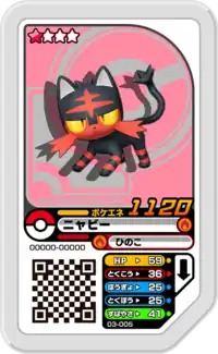 Litten (Japanese: ニャビー Nyabby) is a Grade 1 Pokémon Ga-Olé disk. It is part of the third set.