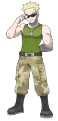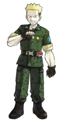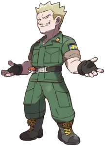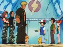 Lt. Surge is known as the "Lightning Lieutenant". Apparently, he is or was a soldier who fought in at least one war, during which Electric-type Pokémon saved his life. As a member of the army, Surge was a strict CO, and was rather cautious. He was a pilot as well, and used Electric-type Pokémon to power his planes, a practice that in at least one occasion saved his life. Also, Surge saved the life of one of the Trainers in his Gym who was in the army at the same time. A little paranoid, Lt. Surge installed a series of traps in the Gym. He takes a liking to Trainers with a lot of guts.