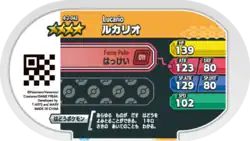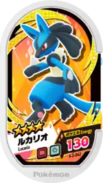 Lucario (Japanese: ルカリオ Lucario) is a Grade 4 Pokémon Mezastar tag. It is part of the second Gorgeous Star set.