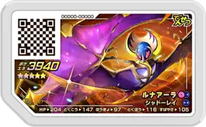 Lunala (Japanese: ルナアーラ Lunala) is a Grade 5 Pokémon Ga-Olé disk. It is part of the fifth set.