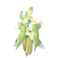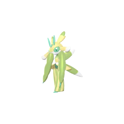 Lurantis, the Bloom Sickle Pokémon. A Grass type, and the evolved form of Fomantis. Lurantis use their flower-like appearance and aroma to lure in opponents and defeat them.