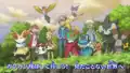 The complete team roster shown in the second variant was valid for less than one episode, as Sliggoo evolved in the episode directly following Fennekin's Evolution into Braixen.