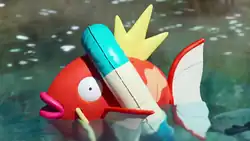 A Magikarp appeared in POKÉMON Detective Pikachu. It was seen at an illegal fight club, where Detective Pikachu tried to get it to evolve in order to battle a Charizard. It eventually did and scared Charizard away.