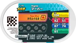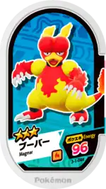 Magmar (Japanese: ブーバー Boober) is a Grade 3 Pokémon Mezastar tag. It is part of the first Double Chain set.