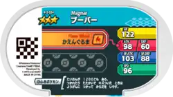 Magmar (Japanese: ブーバー Boober) is a Grade 3 Pokémon Mezastar tag. It is part of the third Gorgeous Star set.