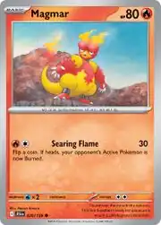 Magmar (Japanese: ブーバー Boober) is a Fire-type Basic Pokémon card. It is part of the Journey Together expansion.