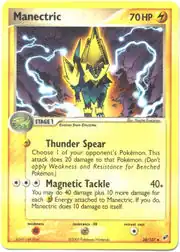 Manectric (Japanese: ライボルト Livolt) is a Lightning-type Stage 1 Pokémon card. It is part of the EX Deoxys expansion.