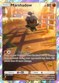 Marshadow (Japanese: マーシャドー Marshadow) is a Fighting-type Basic Pokémon card in Pokémon Trading Card Game Pocket. It is part of the Mythical Island expansion.