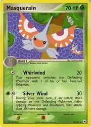 Masquerain (Japanese: アメモース Amemoth) is a Grass-type Stage 1 Pokémon card. It is part of the EX Hidden Legends expansion.
