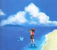 | Walking along the shoreline | Soaring in the sky on Mega Latios | Concept art of May and Mudkip by Hitoshi Ariga for Kotobukiya ArtFx J figurines |