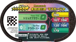 Meowscarada (Japanese: マスカーニャ Masquernya) is a Grade 6 Pokémon Mezastar tag. It is part of the first Gorgeous Star set.