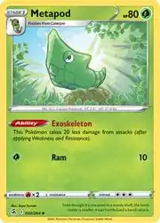 Metapod (Japanese: トランセル Transel) is a Grass-type Stage 1 Pokémon card. It was first released as part of the Fusion Strike expansion.