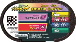 Mewtwo (Japanese: ミュウツー Mewtwo) is a Grade 6 Pokémon Mezastar tag. It is part of the fifth Super Tag set.