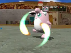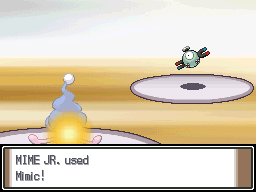 Mime Jr. instantly copies the last move used by the opponent. Sometimes the ball on its head glows white. | ||