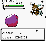 | The user copies the move last used by the target. The copied move can be used until the user of Mimic leaves the battle. | |||