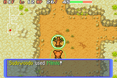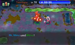 Mimic targets the enemy in front, copying the last move they used. Prior to Super Mystery Dungeon, Mimic will immediately use the enemy's last used move against the enemy. From Super Mystery Dungeon onwards, Mimic instead copies the enemy's last used move for the duration of the dungeon floor. The copied move can then be used from the next turn.