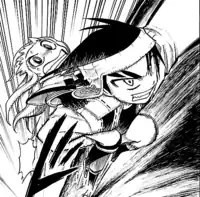 After healing Ryouga, they realize that Yappy had taken the Compass of Light and rush off to go find him. They find Yappy in a small town at the mercy of a Burst Warrior named Rend. Ryouga first attacks Yappy for his misdeed and then goes to battle Rend. Miruto and Yappy watch as Ryouga is once again defeated but is given an offer to become stronger by Rend.