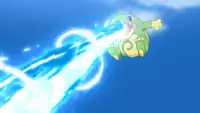 | Description: Politoed combines its Water Gun with Pikachu's Thunderbolt and Forretress's Rapid Spin, creating a tornado of water and electricity. This was used to send Team Rocket and the Invincible Pokémon Brothers blasting off. | |||