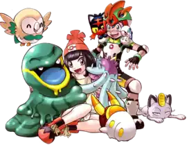 Moon is a girl from the Sinnoh region. She does not enjoy Alola's tropical air, stating that it doesn't suit her character. She isn't one to be fooled by others, easily seeing through Sun's deception and seeing through the lies of the Team Skull Grunts. Moon is a pharmacist and is proficient with making various types of medicine. Due to this occupation, Moon is very knowledgeable about various poisons, as certain kinds can be used to make medicine. In addition to the possible benefits of poison, Moon favors Poison-type Pokémon and finds them to be cute. Moon is also a skilled archer, which helps her get medicinal supplies by firing at the desired item with her bow and arrow.