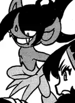 Morgrem lacks confidence in its physical strength, so it makes up for it with cunning and dirty tactics. It feigns surrender by going down on all fours to lure its opponents, before it stabs them with its hair. It tends to lure people into the woods where it lives. Like Impidimp, Morgrem feeds on negative emotions. Some people believe that Morgrem has the ability to make crops grow. Morgrem is very popular with people who have gloomy thoughts. Morgrem and its evolutionary relatives are male-only species.