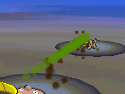 Groudon fires a stream or multiple blobs of brown mud from its mouth at the opponent. | ||